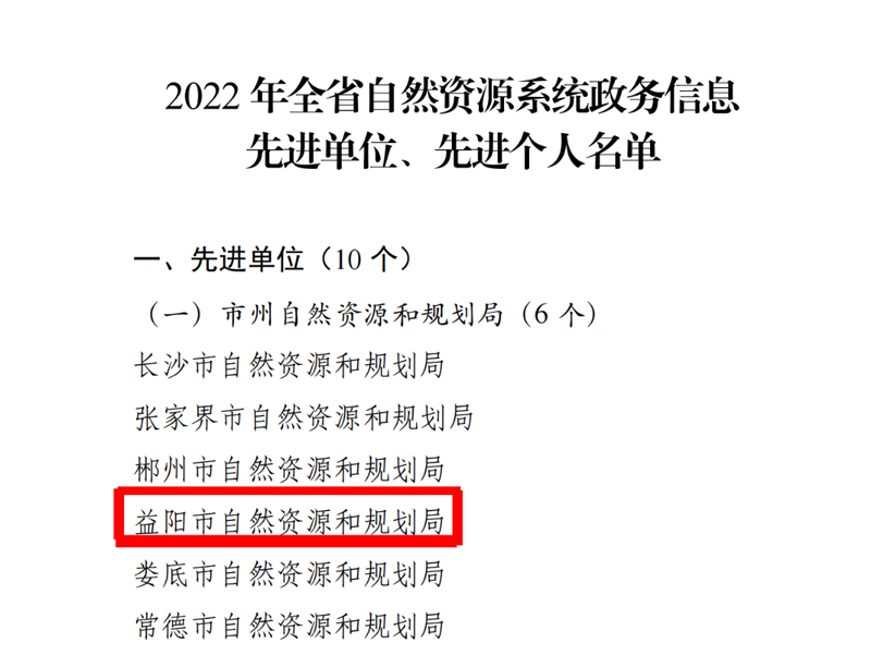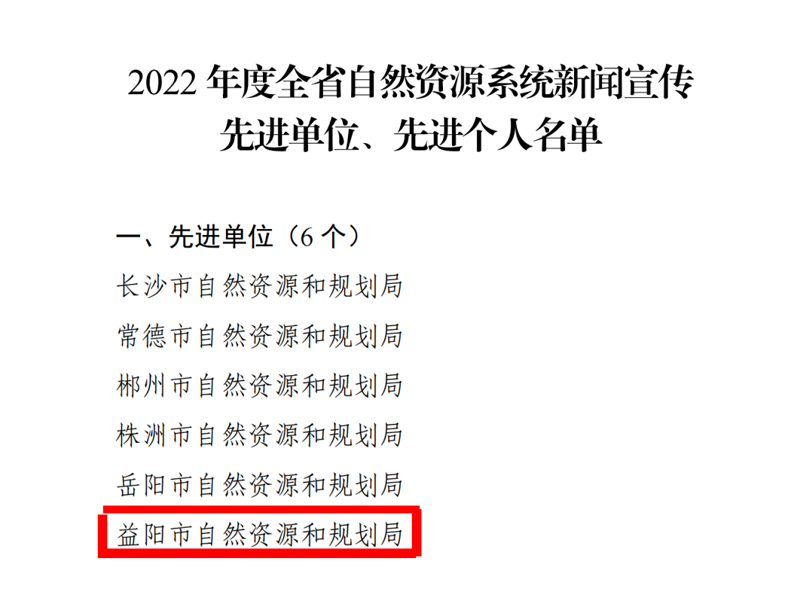 12月7日,省自然资源厅印发《关于表彰2022年度新闻宣传先进单位和先进个人等荣誉的通报》,市局荣获2022年度全省自然资源系统“新闻宣传工作先进单位”“政务信息先进单位”荣誉称号,全市自然资源系统多人被评为先进个人。