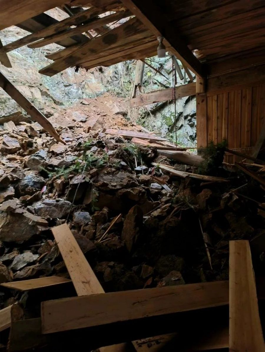 “幸好及时转移了,家里住了7个人,不然真不知道会发生什么事。”崩塌发生于2024年1月20日3时,发生好像就在一瞬间,山上的岩石泥沙“轰”地一滚而下,王同怀家靠近山体的房间被冲毁。