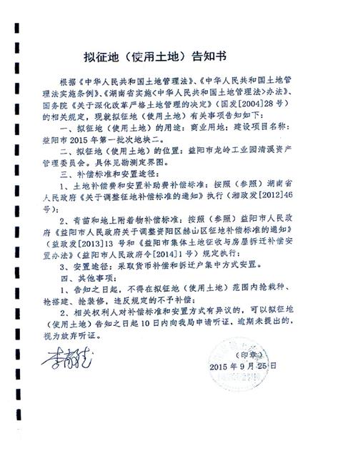 拟征地告知书(2015清溪资管会)