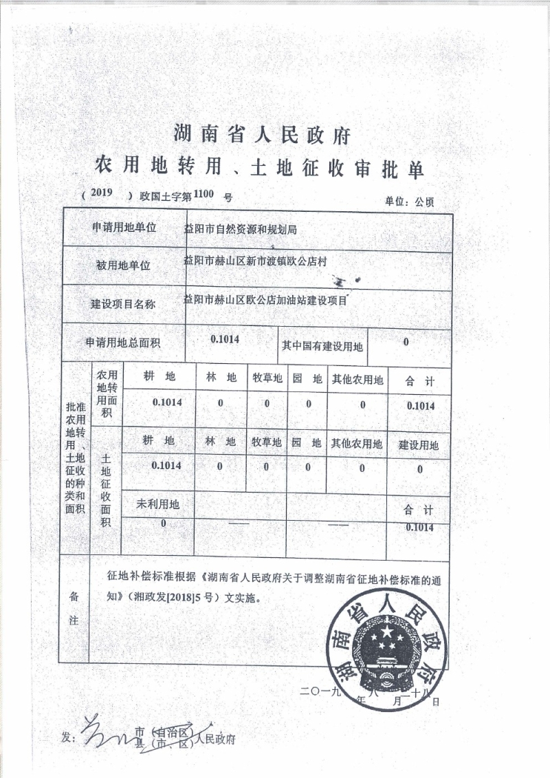 用地批转文件2019第1100号