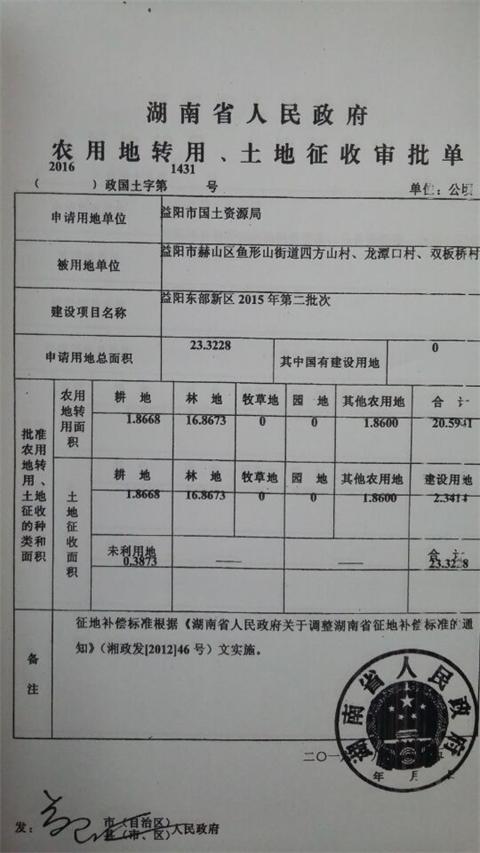 用地批转文件2016第1431号