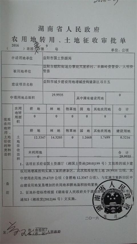 用地批转文件2016第009号