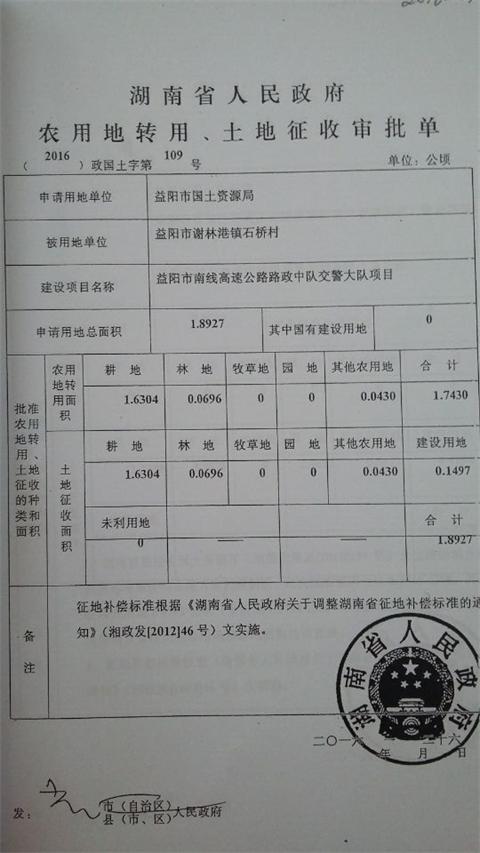 用地批转文件2016第109号