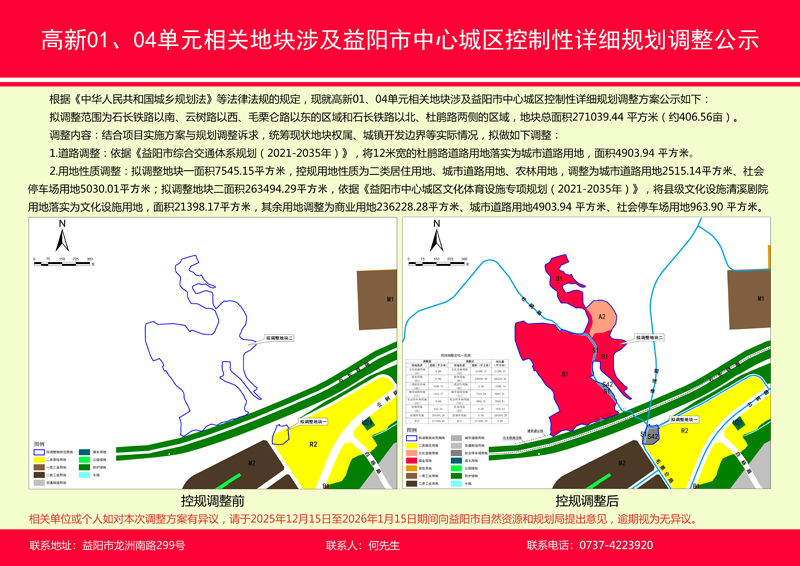 高新01、04单元相关地块涉及益阳市中心城区控制性详细规划调整公示